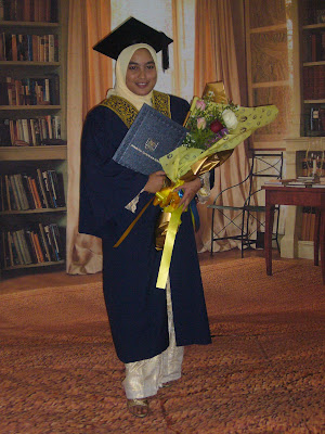 Aku bawa mama n ayah aku ke jamuan yang disediakan, mama aku hadiahkan aku tedy bear pki jubah mcm aku..heeheheh..dia tahu aku sukakan bear..lpas tue aku bergambar di studio ngan mama n ayah aku..aku rase kosong pic tue sbb xde adik2 aku yang lain..diorang semua x dpt datang...aku paham..at least aku ada mama n ayah yg masih setia bersama aku..